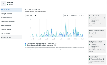Zkontrolujte váš Pixel ve Správci událostí a projděte měření jednotlivých událostí (ViewContent, AddToCart, Purchase). Udělejte si testovací objednávku a ověřte, zda, se vše propisuje správně. Podívejte se také do sekce Diagnostika, zda Meta neidentifikovala nějaký problém.